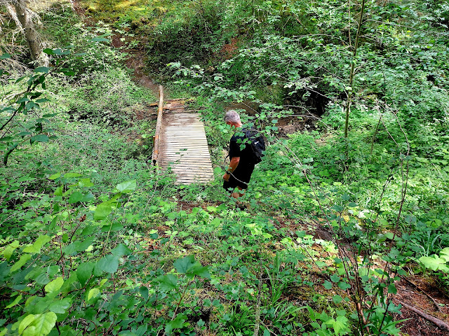 Peuranpolku kulki kuusimetsässä ylös alas ylitellen välillä puroja.